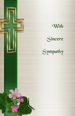 The Holy Sacrifice of the Mass will be offered for the repose of the soul of........by.........With sincere sympathy from.........
