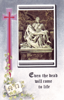 The Holy Sacrifice of the Mass will be offered for the repose of the soul of.........by..........With Sincere Symjpathy from........ (God so loved the world that he gave his only Son, that whoever believes in Him may not die, but may have eternal life. John3:16