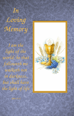The Holy sacrifice of the Mass will be offered for the repose of the soul of..........by..........With Sincere Sympathy from.........