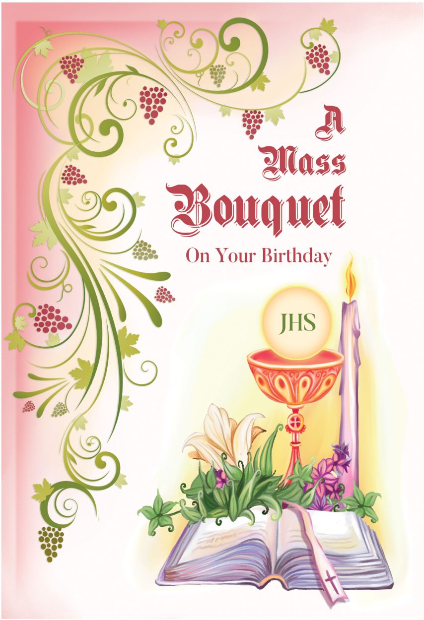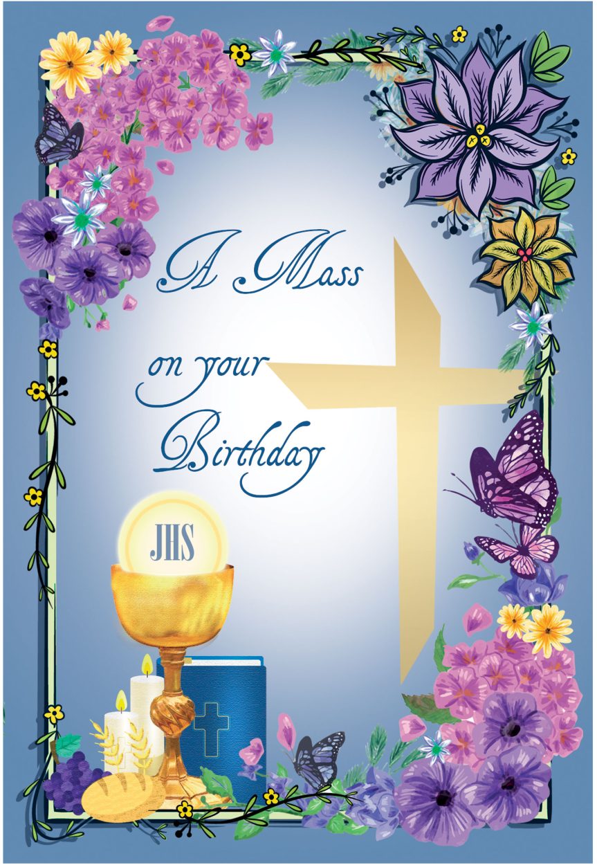 £1.50 Pack of 12 Mass on your Birthday cards, 2 designs, 76" x 5" (186 x 125mms), ind. cello-wrapped
