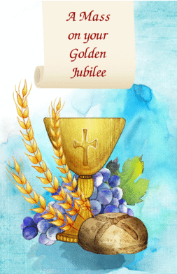 The Holy Sacrifice of the Mass will be offered for your Golden Jubilee on........by.........with best wishes from........